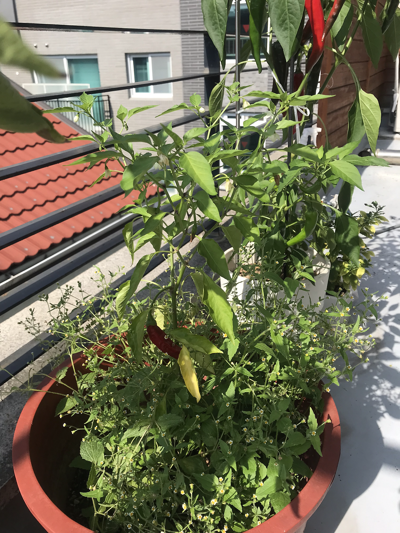 고추 모종도 잘 자랐다. 심고 대충 물 준 거 같은데 알아서 크다니.