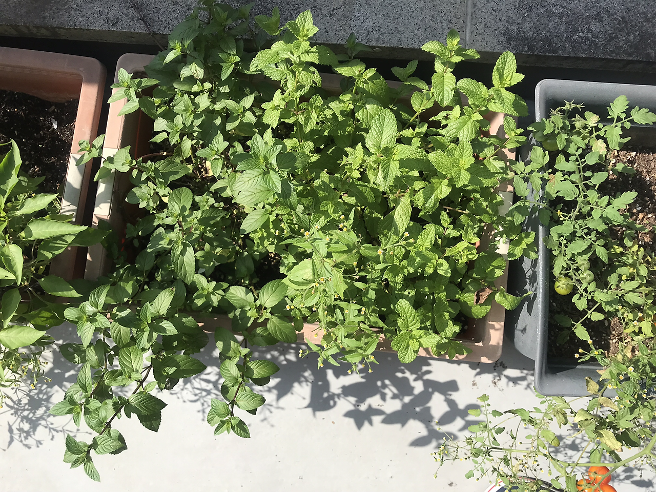 무성히 자란 바질, 애플민트, 스피아민트도 반갑다.