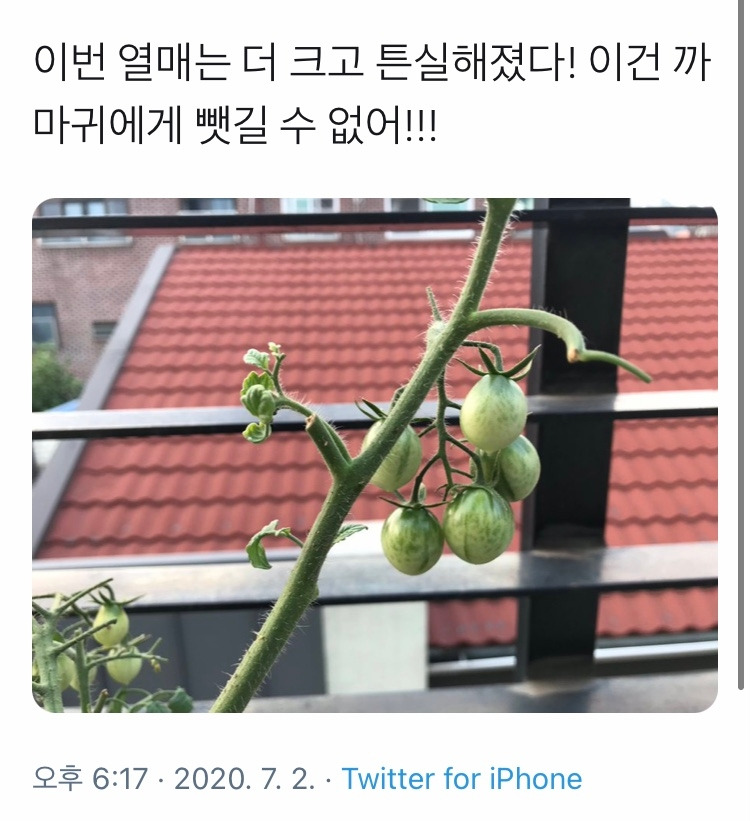 화가 났다! 도시 한복판에서 새의 습격을 당할 줄이야. 허수아비라도 세울까 생각하다가 몇 알의 방울토마토를 지키기 위해 그러는 것도 쪼잔한 것 같아서 참았다.