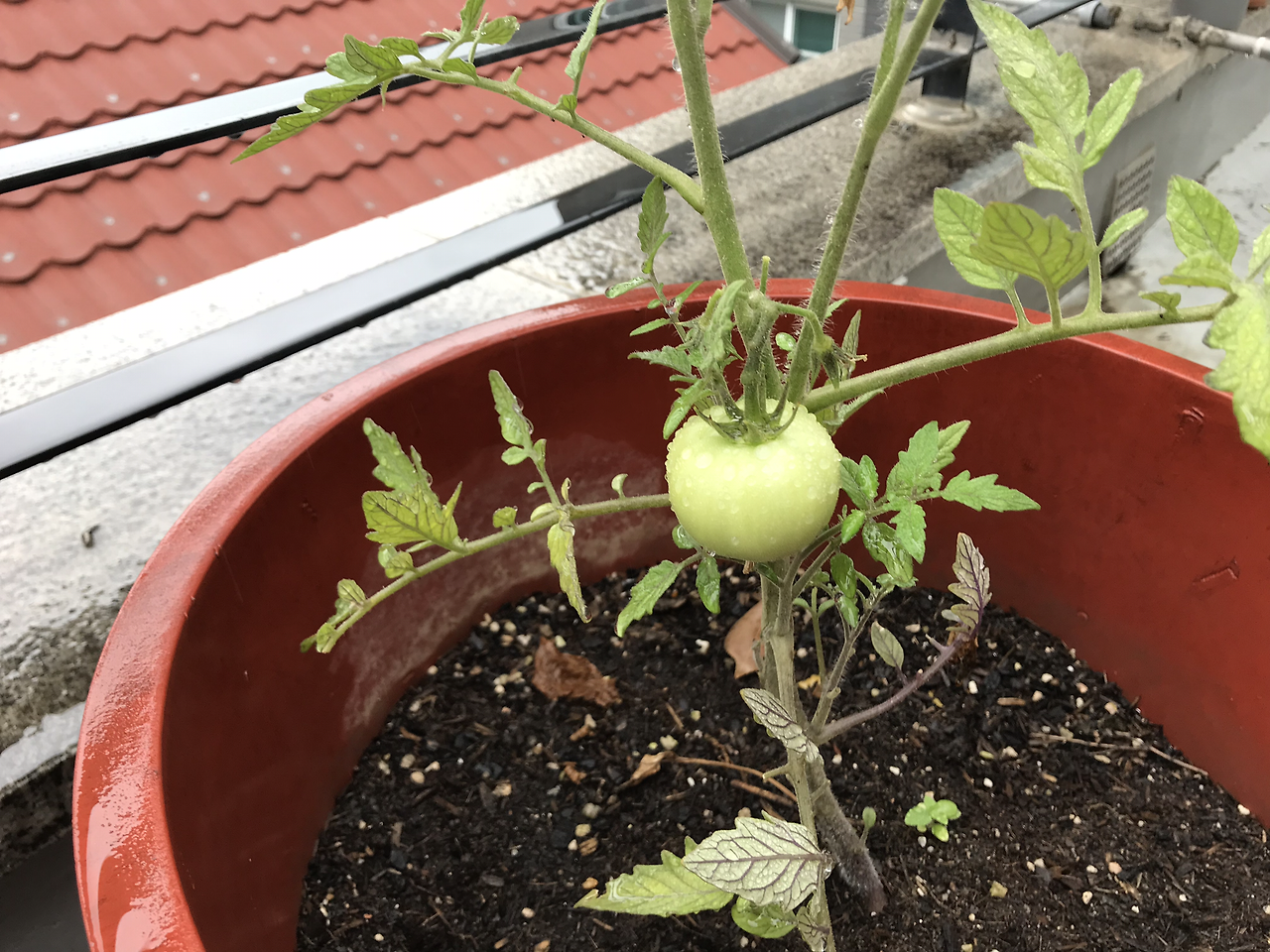 올해도 나는 토마토 모종을 심었다. 방울 토마토 말고 큰 토마토로. 딱 하나 익어가는 이 토마토 언제 먹을지 요즘 매일 같이 지켜보는 중이다.