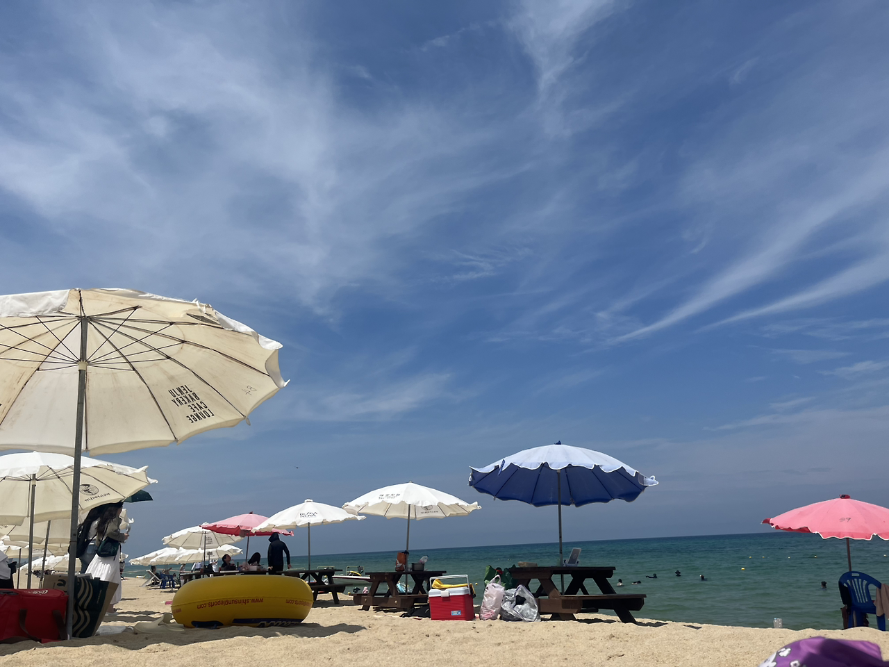 그냥 바다에 둥둥 떠다니기만 해도 기분이 좋네. 바닷가 그늘에서 쉬는 순간이 좋다. 여름은 싫지만 한여름 바다는 좋으니깐