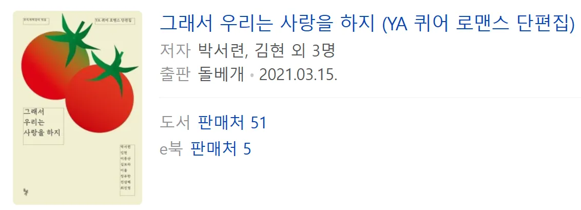 제가 농구부를 다시 하기 전, 2021년에 쓴 소설이 있어요. 돌베개라는 출반사에서 출판이 된 건데, <그래서 우리는 사랑을 하지>라는 청소년 퀴어 로맨스 단편집이에요.