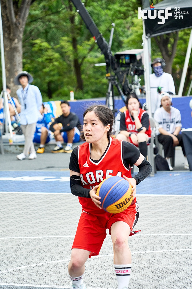지금은 졸업하신 썬 김예은 선수. 제가 이전에 3대 3 대회에 나갔을 때 크게 지고 있었거든요. 힘도 다 빠진 상태였는데 몇십 초 정도 남았을 때 예은 님이 막 웃으면서 페인트존에서 자리를 잡고 ‘공 한 번만, 포스트업 한 번만’이라고 하시는 거예요. 그때 머리로는 파울로 끊어야 한다고 생각했는데 실제로는 포스트업 당하기도 전에 1초 만에 뚫렸어요. 그때의 기억이 사실 나쁘게 남아 있지는 않아요. 오히려 그 순간 자체가 되게 재밌었거든요. 그래서 저에게 많은 팁도 주시고, 추억도 선물해 주시고, 여러모로 존경하는 김예은 선수께 언젠가 포스트업을 쳐보고 싶습니다.