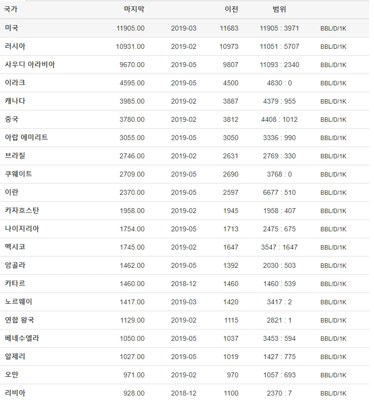 원유 생산량 국가별 순위