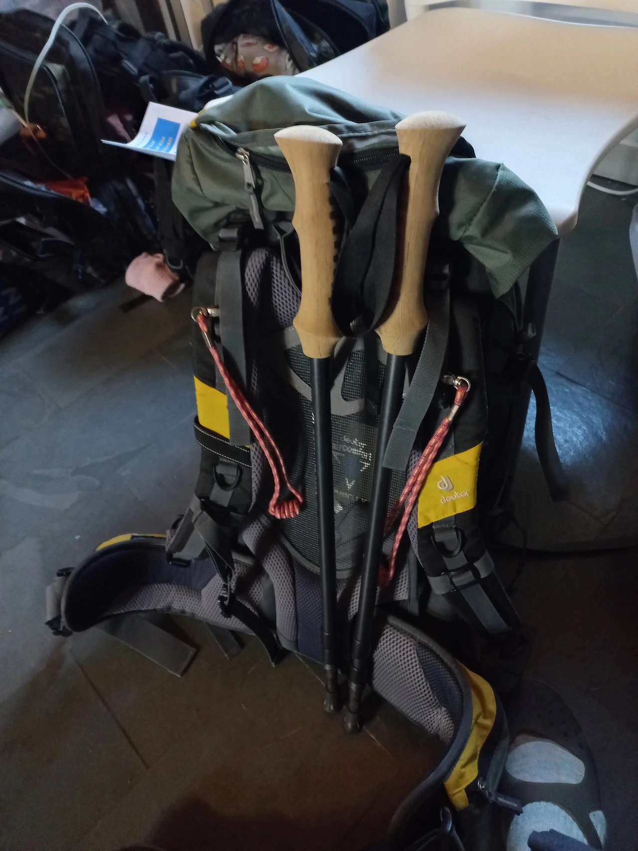 동키서비스에서 돌아온 내 배낭에 아주 가벼운 스틱 두 개와 어깨끈에 분홍 손잡이가 두 개 걸려 있다. 무슨 착오라고 하기에는 뭔가 석연치 않다. 직접 끈을 묶었고 그리고 스틱을 꽂았다.