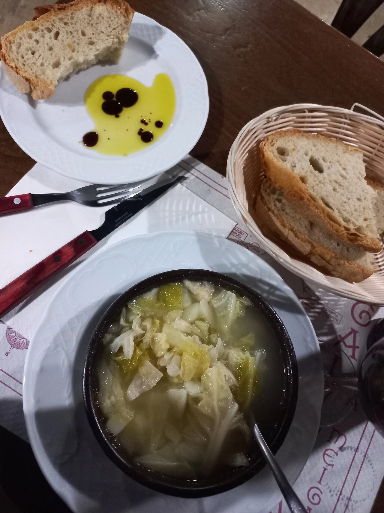 양배추. 감자가 들어간 수프와 감자 프라이드와 돼지고기구이, 그리고 와인. 후식으로는 커피를 달라고 해서 마셨다.