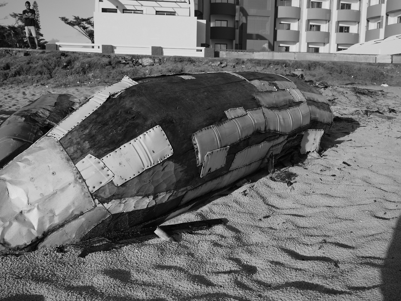 그물을 치기 위해 앞바다로 떠어 가는 배의 밑바닥. 본디는 나무였을 사이사이, 퀼트를 짠 듯 덧 대인 조각들.