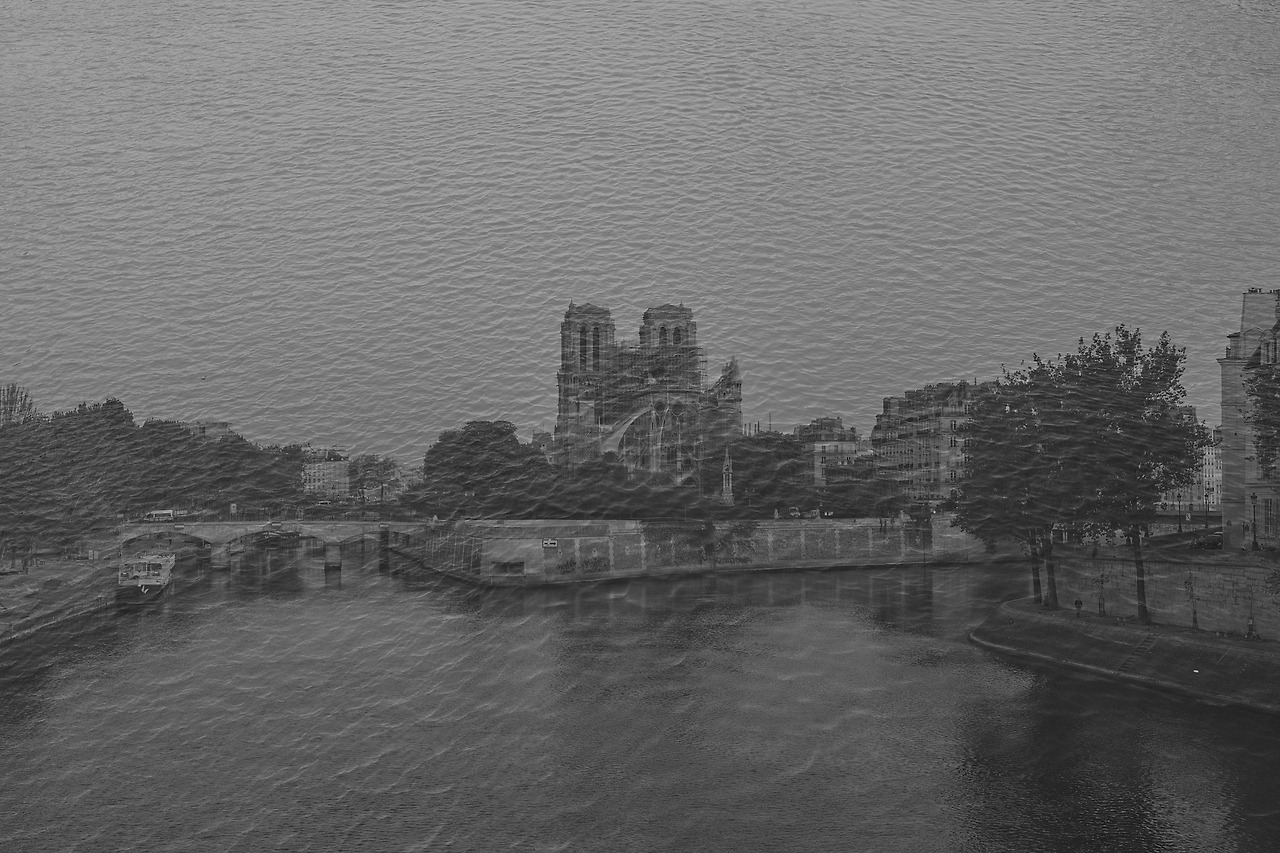 좋아하는 생 제르맹 데 프레 거리를 거닐다가 노트르담이 보이는 세느 강변으로 나가 성당과 강의 풍경을 이중 노출로 담고 싶었다. 한 번도 시도해 본 기법은 아니지만, 마음속에 그려진 느낌이 좋았다.