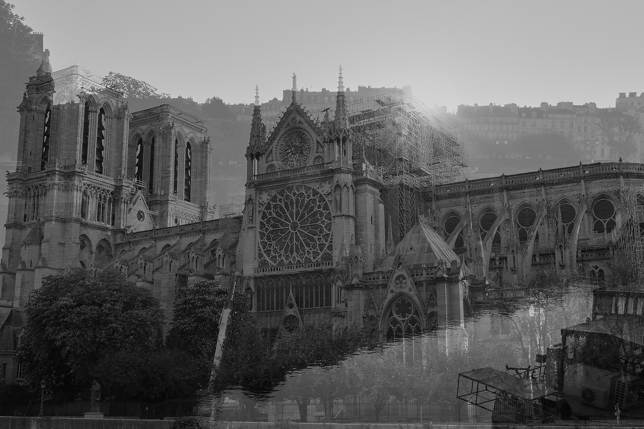 불에 탄 노트르담을 바라보다.