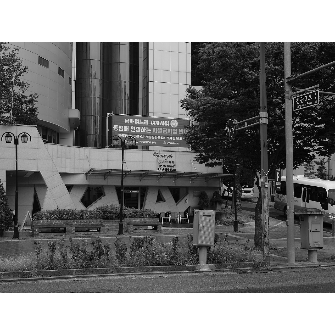 큼지막하게 걸어놓은 현수막이 눈에 들어오더군요.