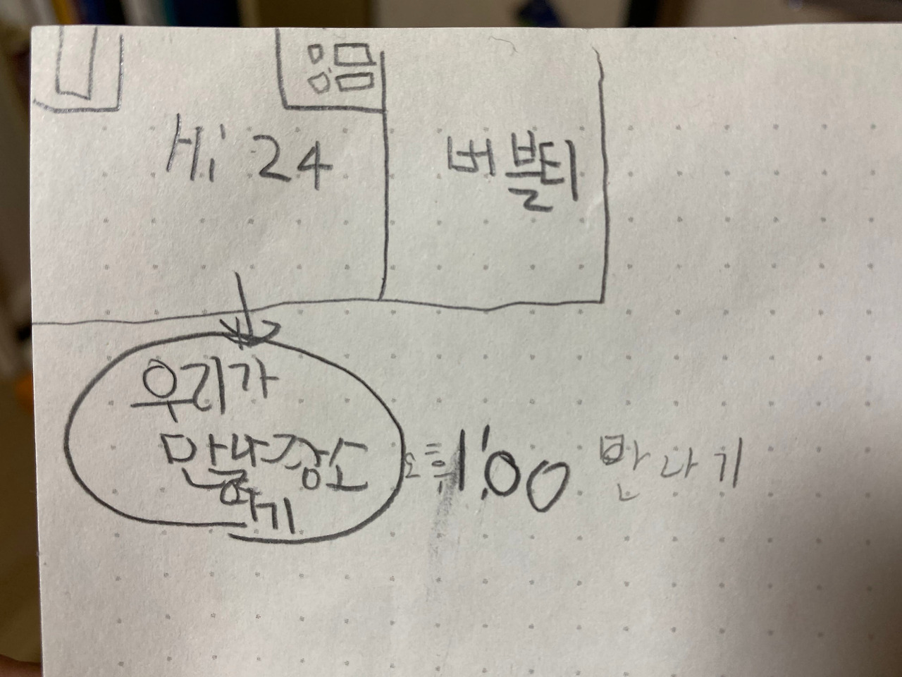 버블티 옆 하이24에서 만나기로 했으니 두 장소를 약도에 그려주는 꼼꼼함이란... 버블티는 아마도 xx커피를 얘기하는 것 같은데, 친구가 거기서 버블티를 마신 적이 있나 보다. :)