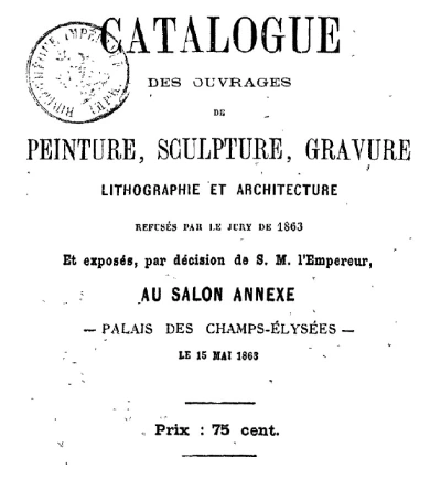 1863년 낙선전 카탈로그불만이 거세지자 나폴레옹 3세는 사태를 수습하기 위해 거절된 작품들을 모아 전시하도록 했다.
