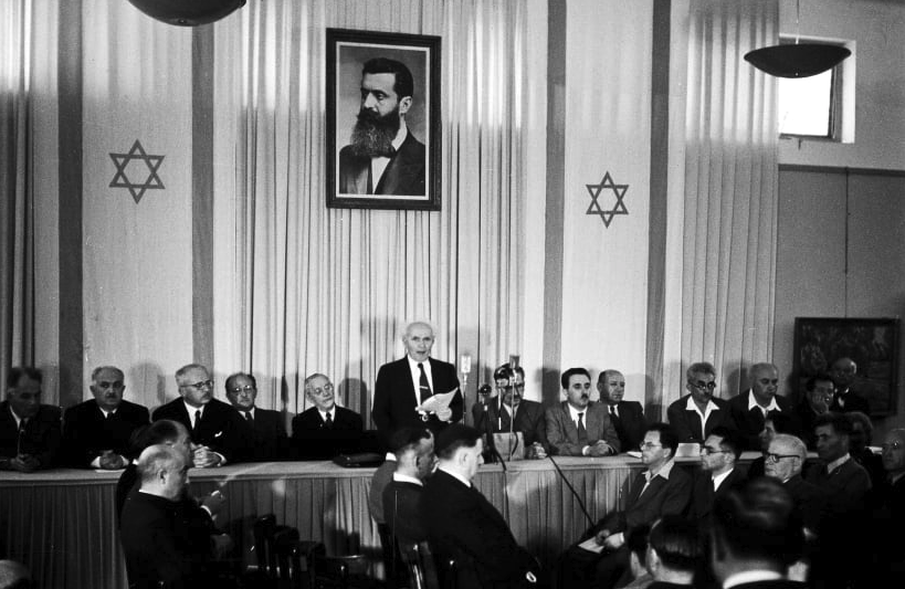1948년 5월 14일 이스라엘 독립선언문을 읽고 있는 벤 구리온 (출처 jpost.com/israel-news)
