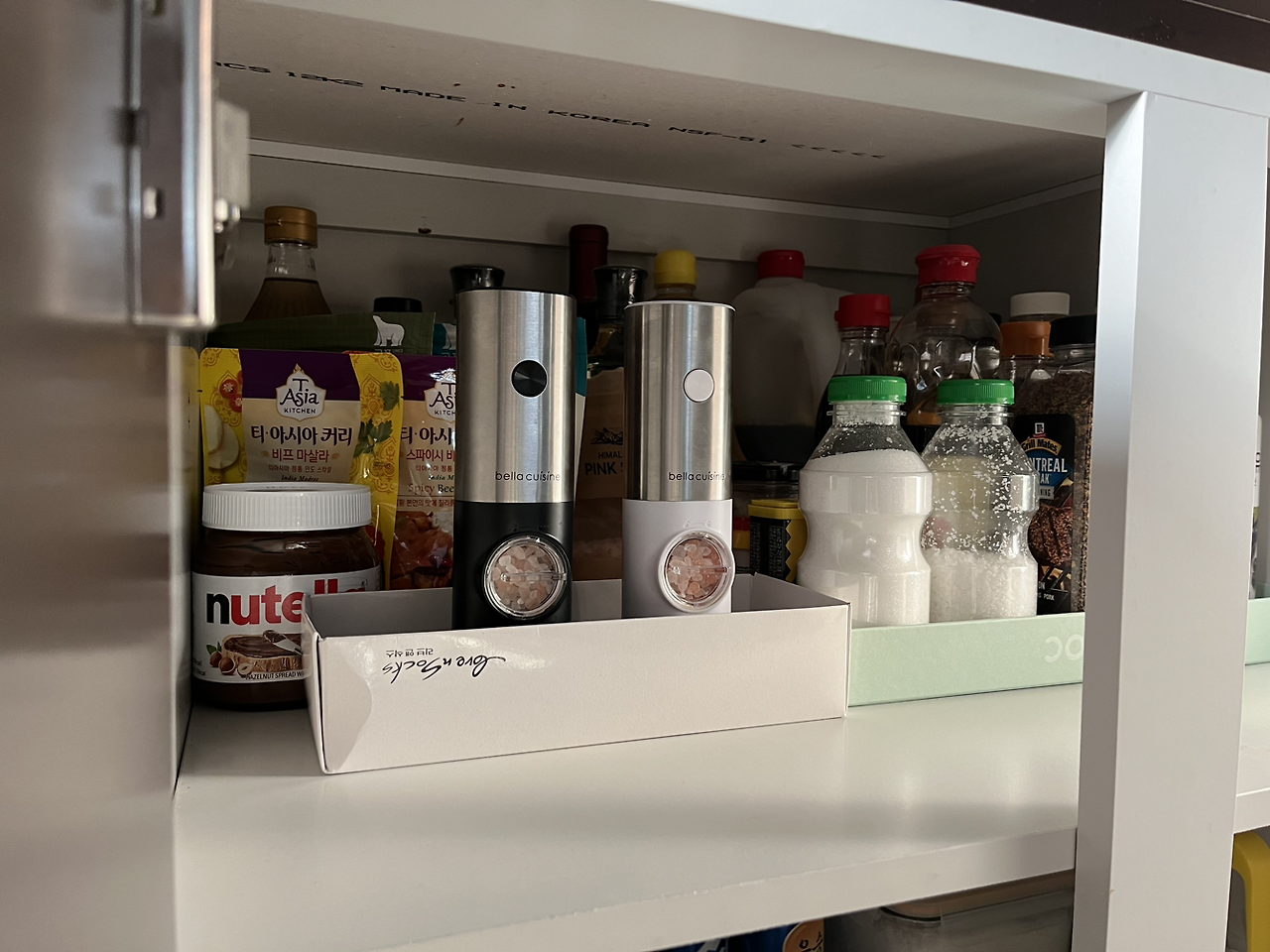 *그라인더 소금은 밑에 받침이 있지만 가루가 잘 떨어져서 따로 담기로 했어요!!