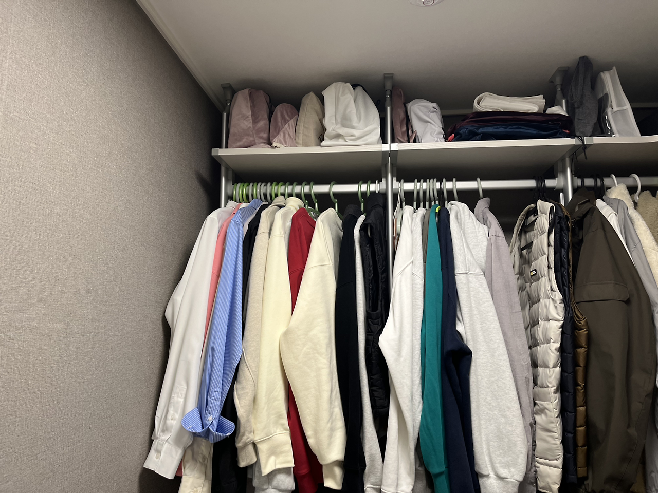 여름옷과 임신 전 입던 옷은 서랍장에 보관하고 당장 입는 겨울 옷만 걸어두기로 결정!!