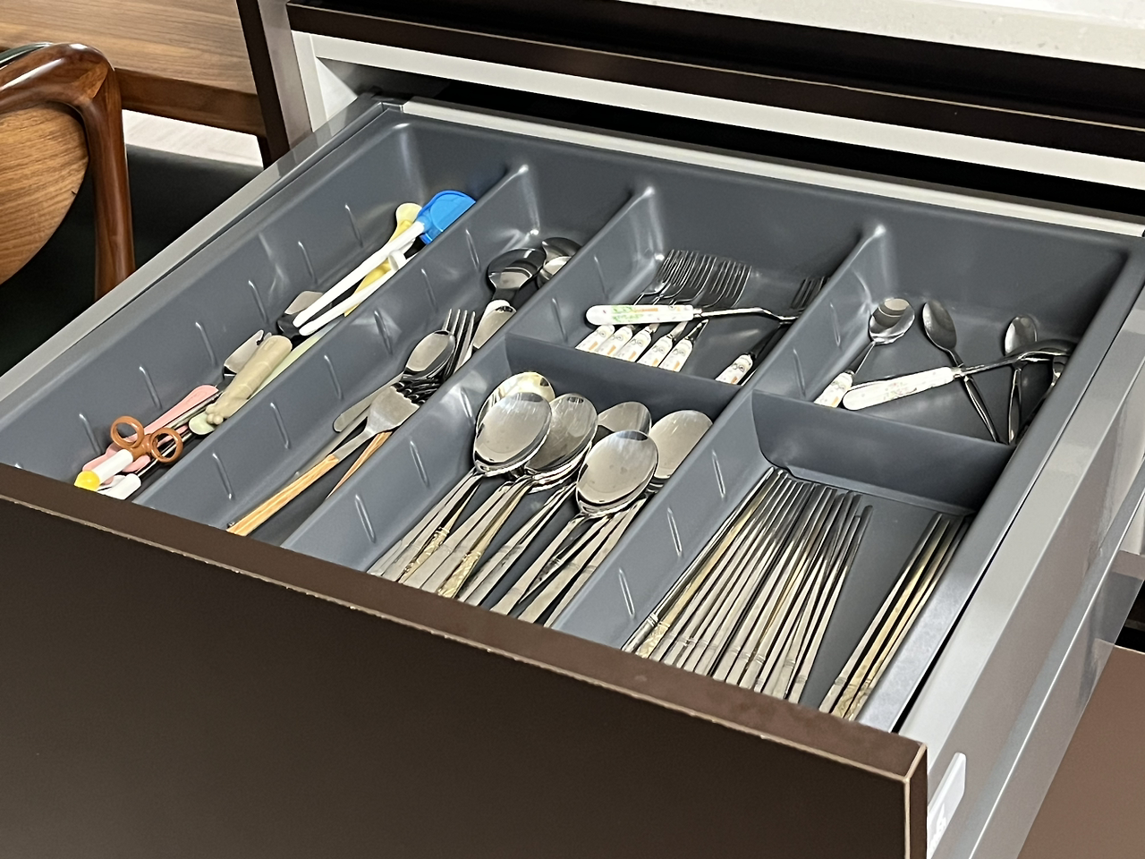 수저 서랍에 가득 들어 있던 수저들을 모두 수저통에 담을 수는 없었다.
