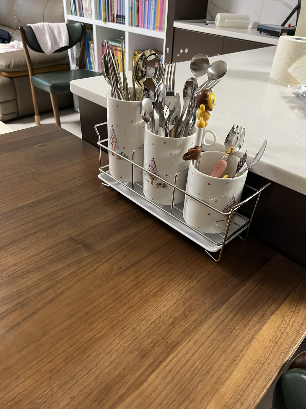 수저통을 어디에 둘까 여기저기 시뮬레이션을 하던 중 역시나 동선을 고려하여 식탁 위에 두기로 결정했다..