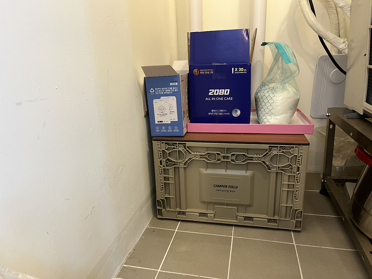 중고거래에 올려 정리를 하려고 하다가 실외기실과 세탁실에 두고 선반 겸 수납함으로 사용 중이다.