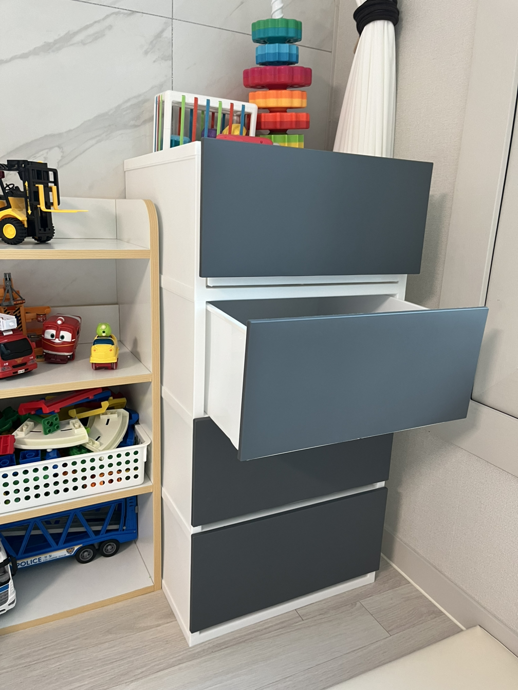 지금은 아이 장난감을 정리하기 위해 거실로 나와 장난감 정리함이 되었다.