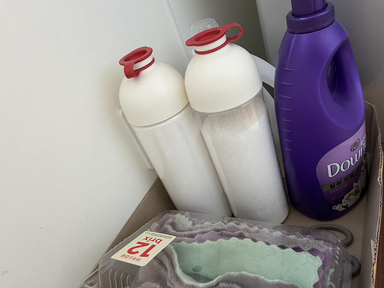 현재는 베이킹소다와 과탄산소다를 담아 사용 중이다.