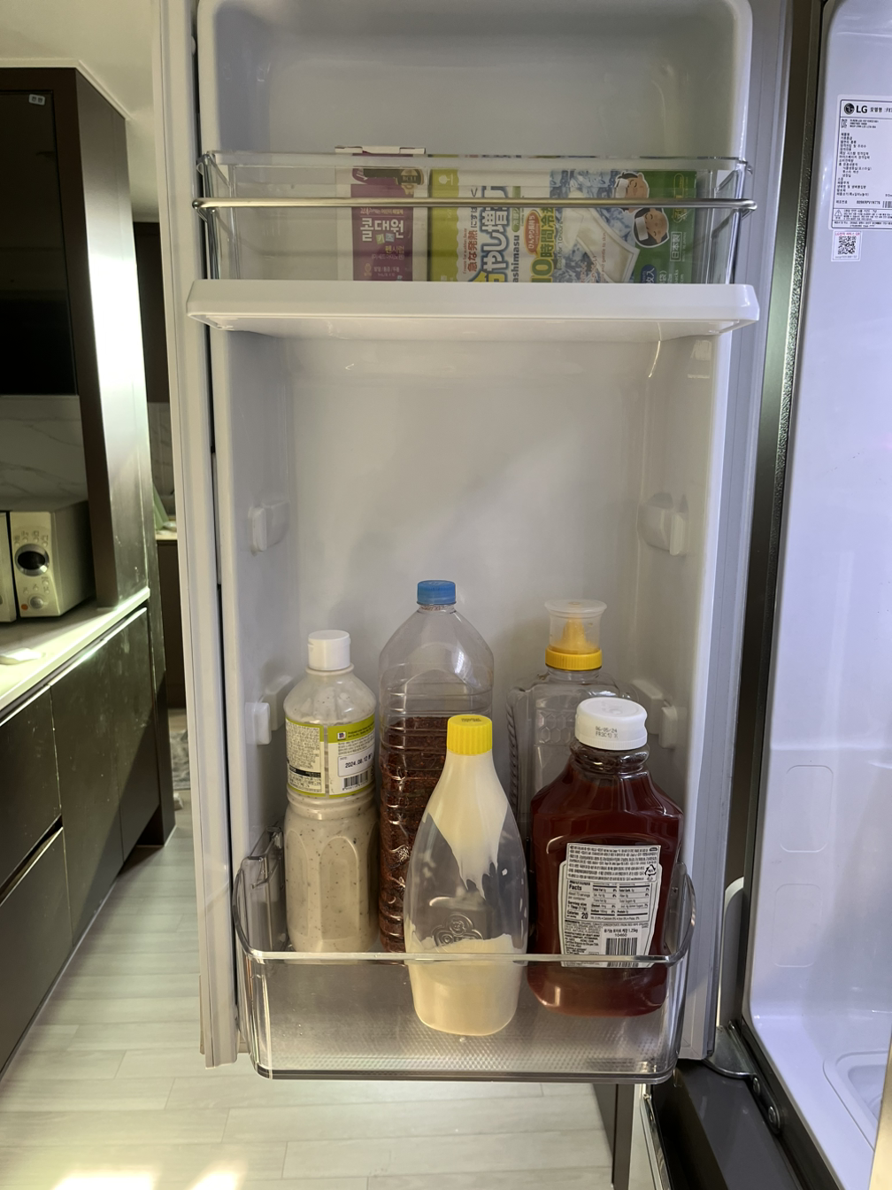 냉장고에 있던 물건들만 재배치했는데 무언가 새 집에 온 것 같은 느낌이 들었다.