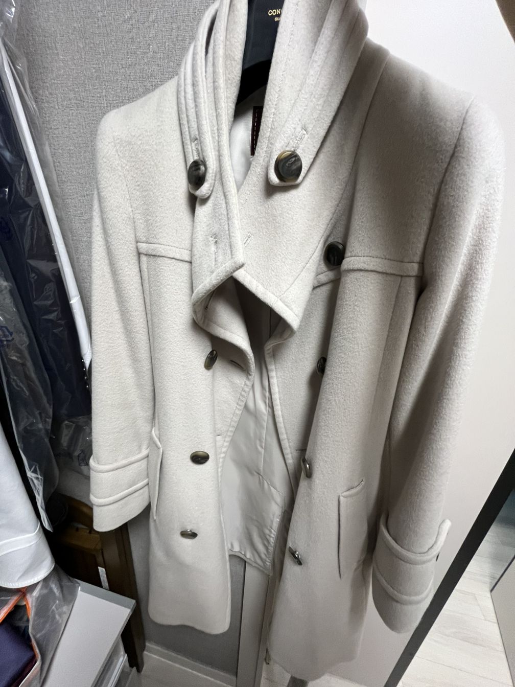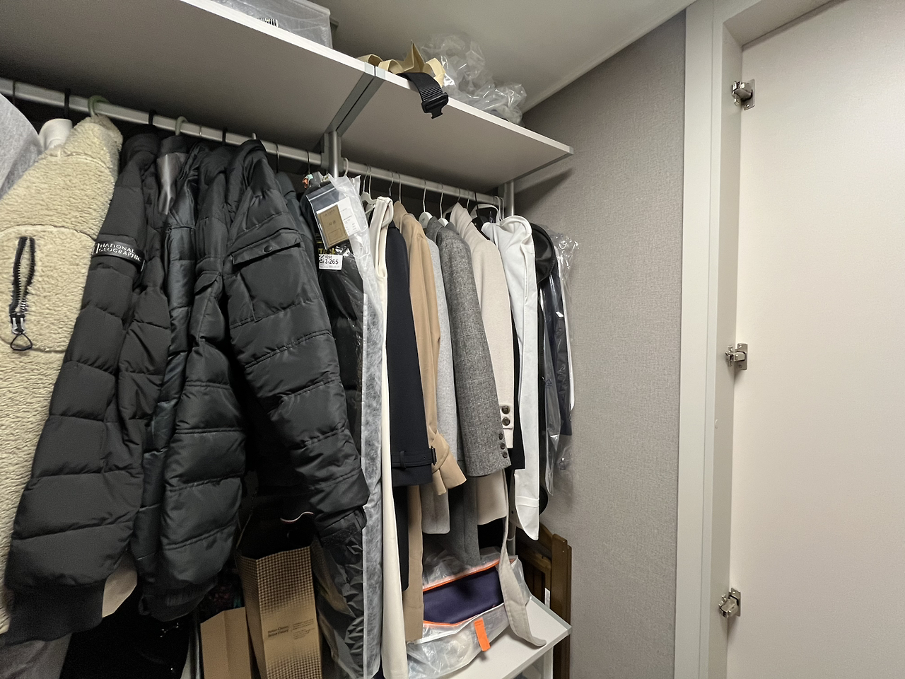 최대한 불필요한 옷들은 정리했으니 이 코트 하나정도는 걸어 둘 공간이 충분하다는 자기 위안을 하며 옷장 정리는 마무리!!