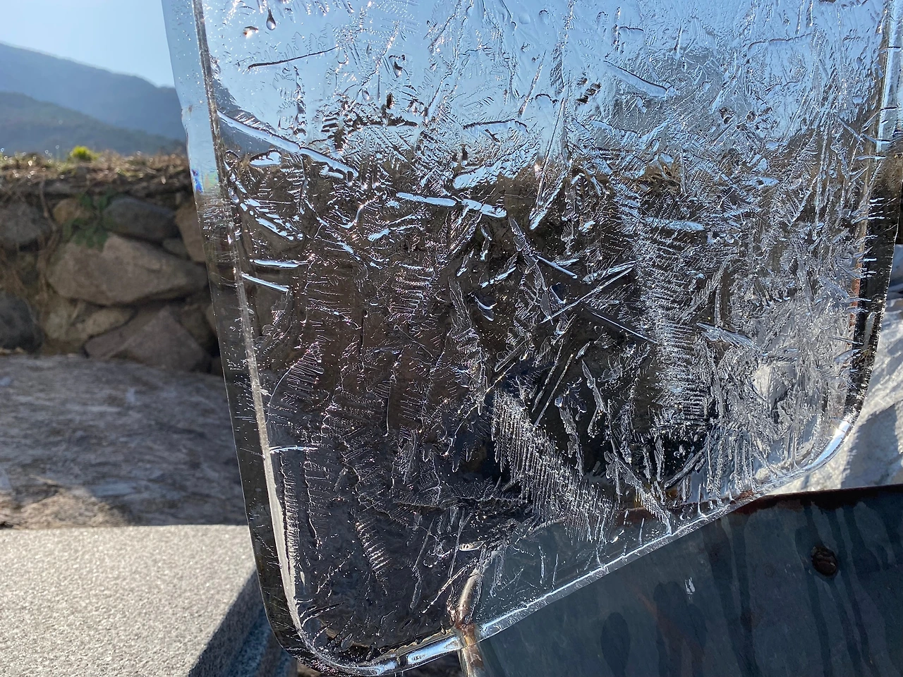 꽃샘추위가 드는 초봄, 텃밭의 수레에 담긴 물이 얼음결정을 하고 얇게 얼어있는 것도 본다.