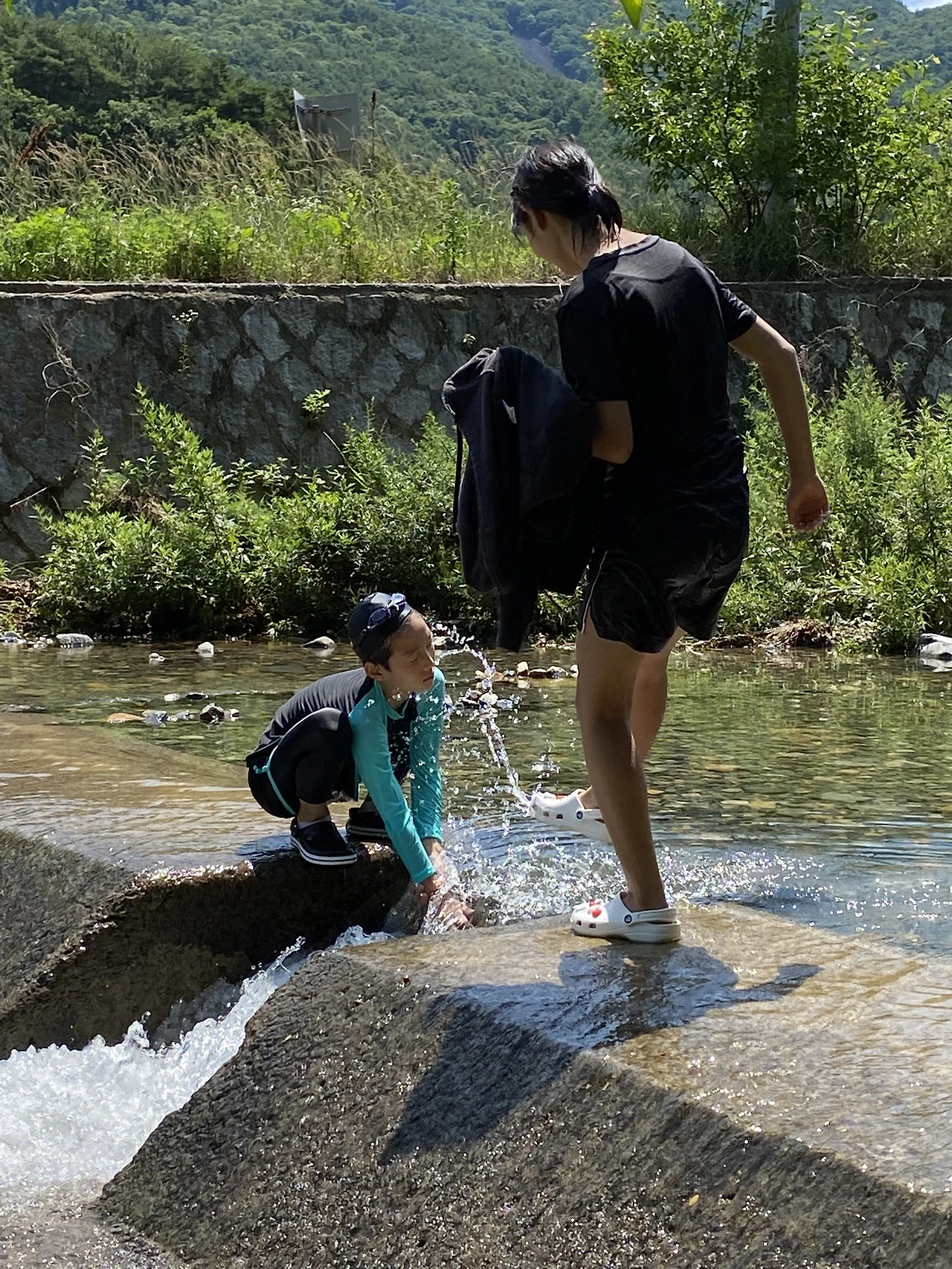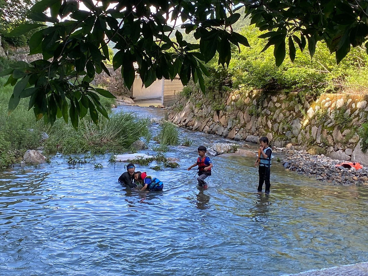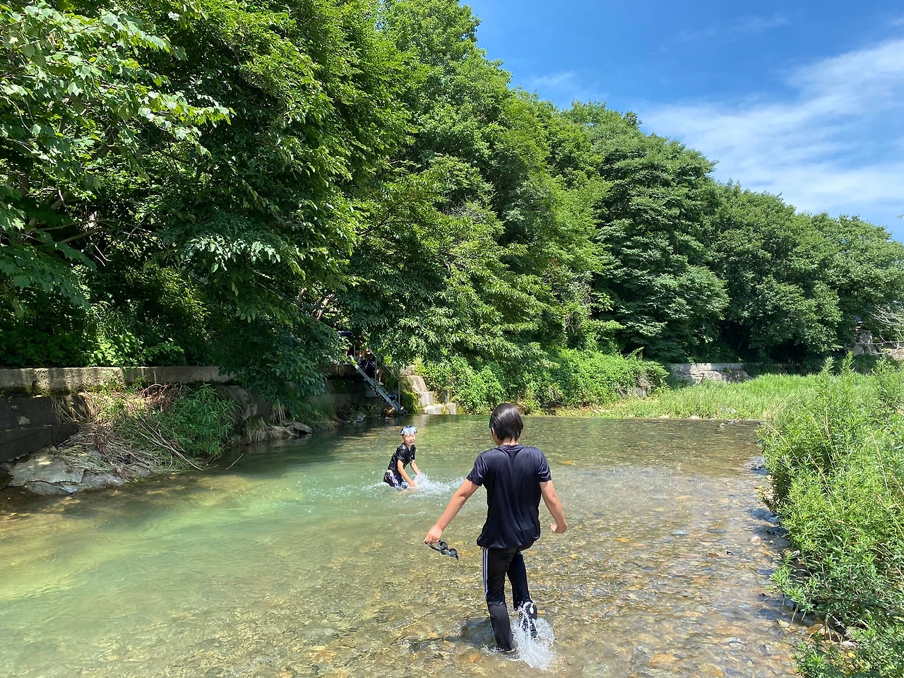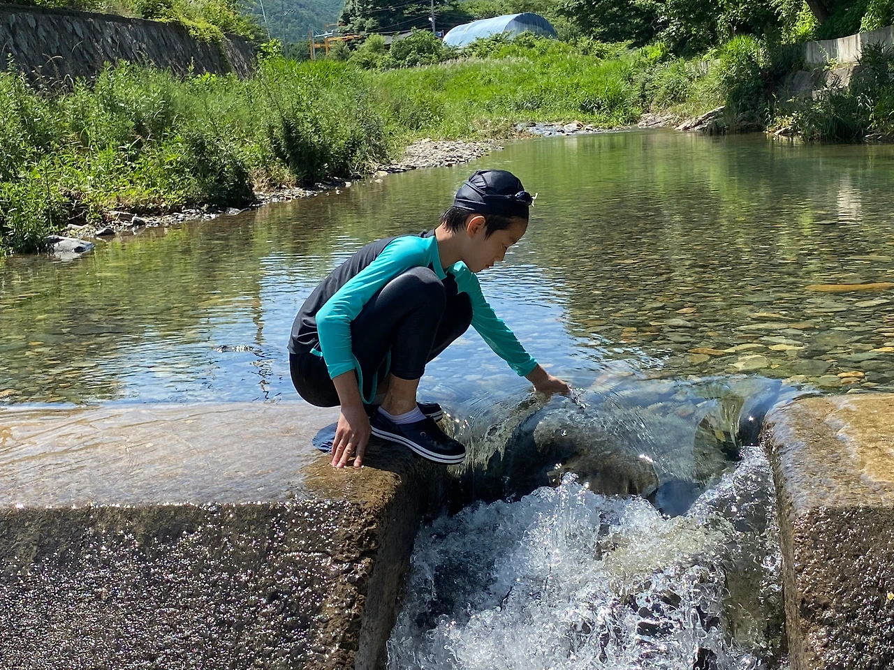 벌써 물놀이 중독이 된 걸까? 학교 마치면 같은반 민찬이, 현우와 달려와서 물놀이하러 간다.