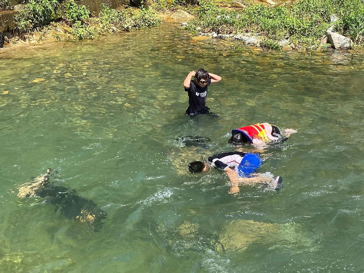 물놀이를 하다 추우면 햇볕에 잘 달궈진 돌위에 눕거나