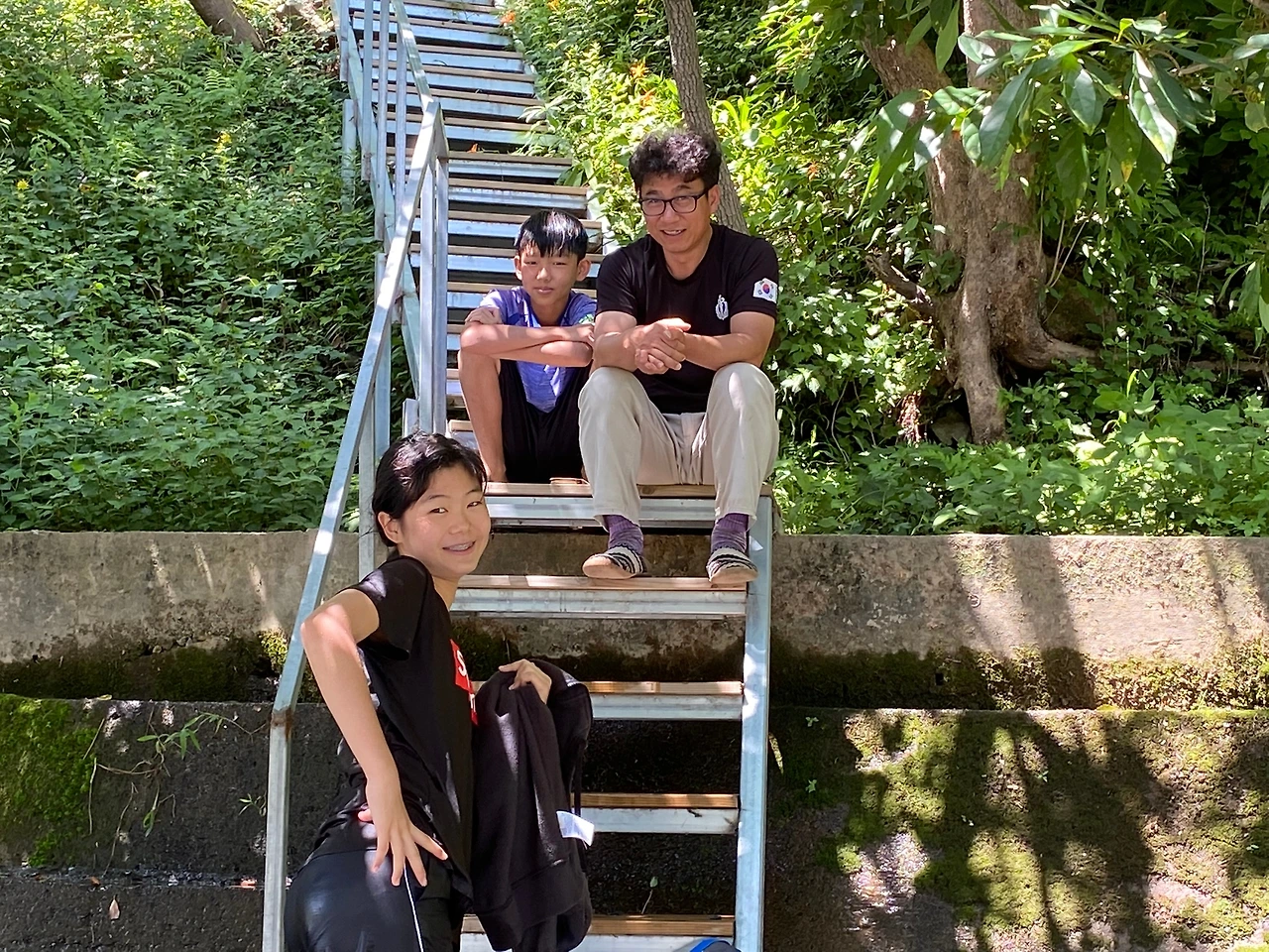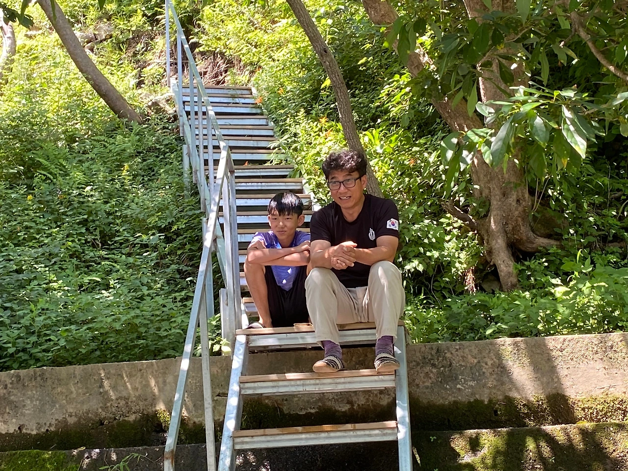 계단에 앉아 아저씨와 도란도란 이야기를 하고 규리는 앞에서 까불었다.