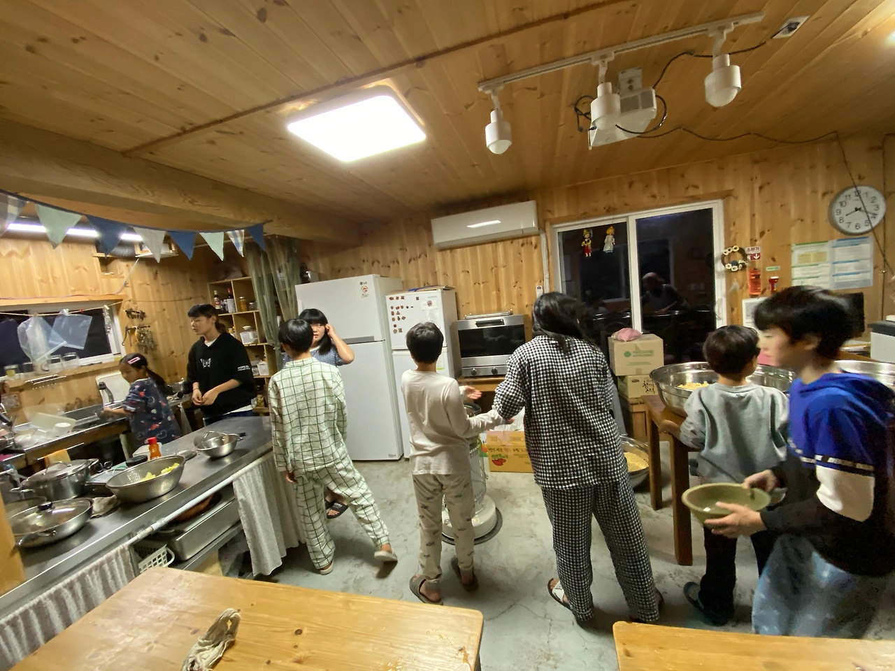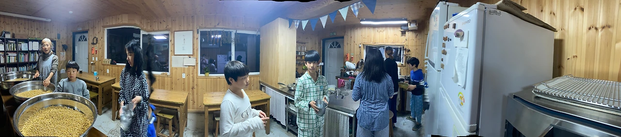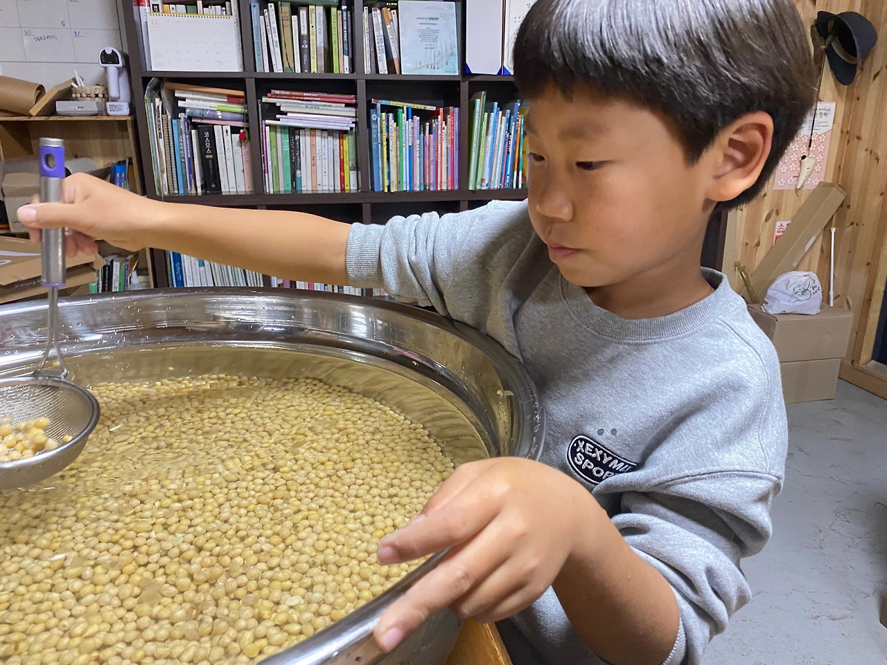 저녁 시간 내내 걸려 메주콩을 아이들과