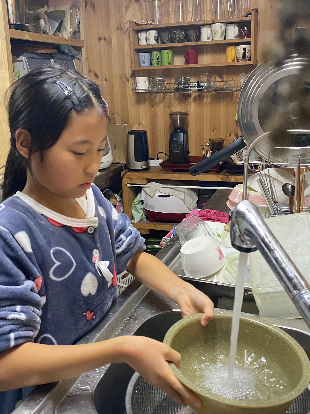 다온이는 물을 붓고 난뒤 빈 바가지를 옮기는 일을 했다.