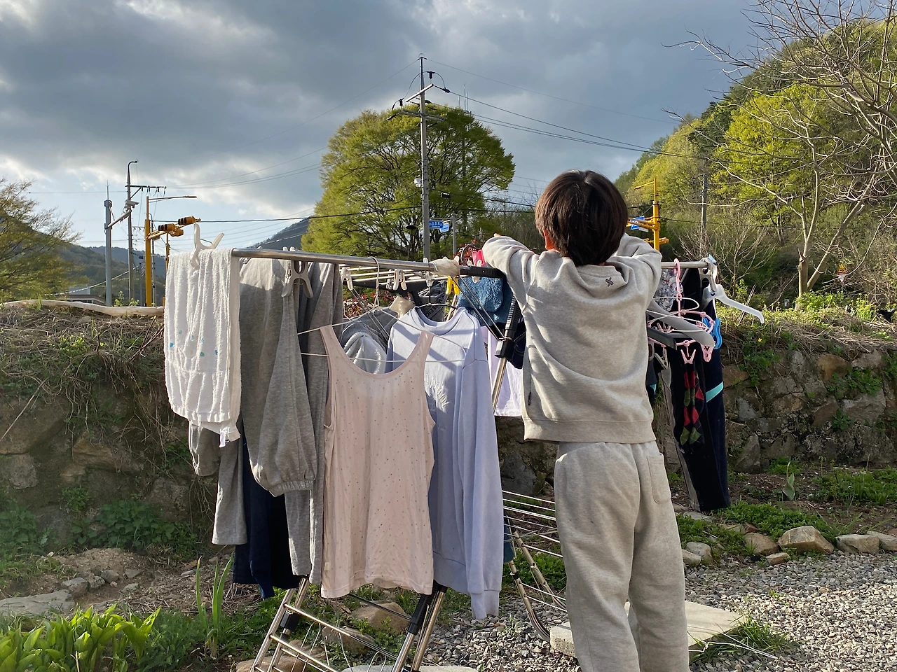 보다가 바람따라 춤추듯 팔랑이는 빨래에 시선이 고정되었습니다. 어린 시절로 잠시 다녀왔습니다.