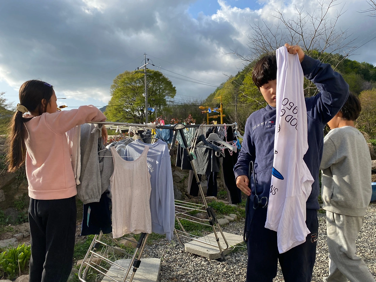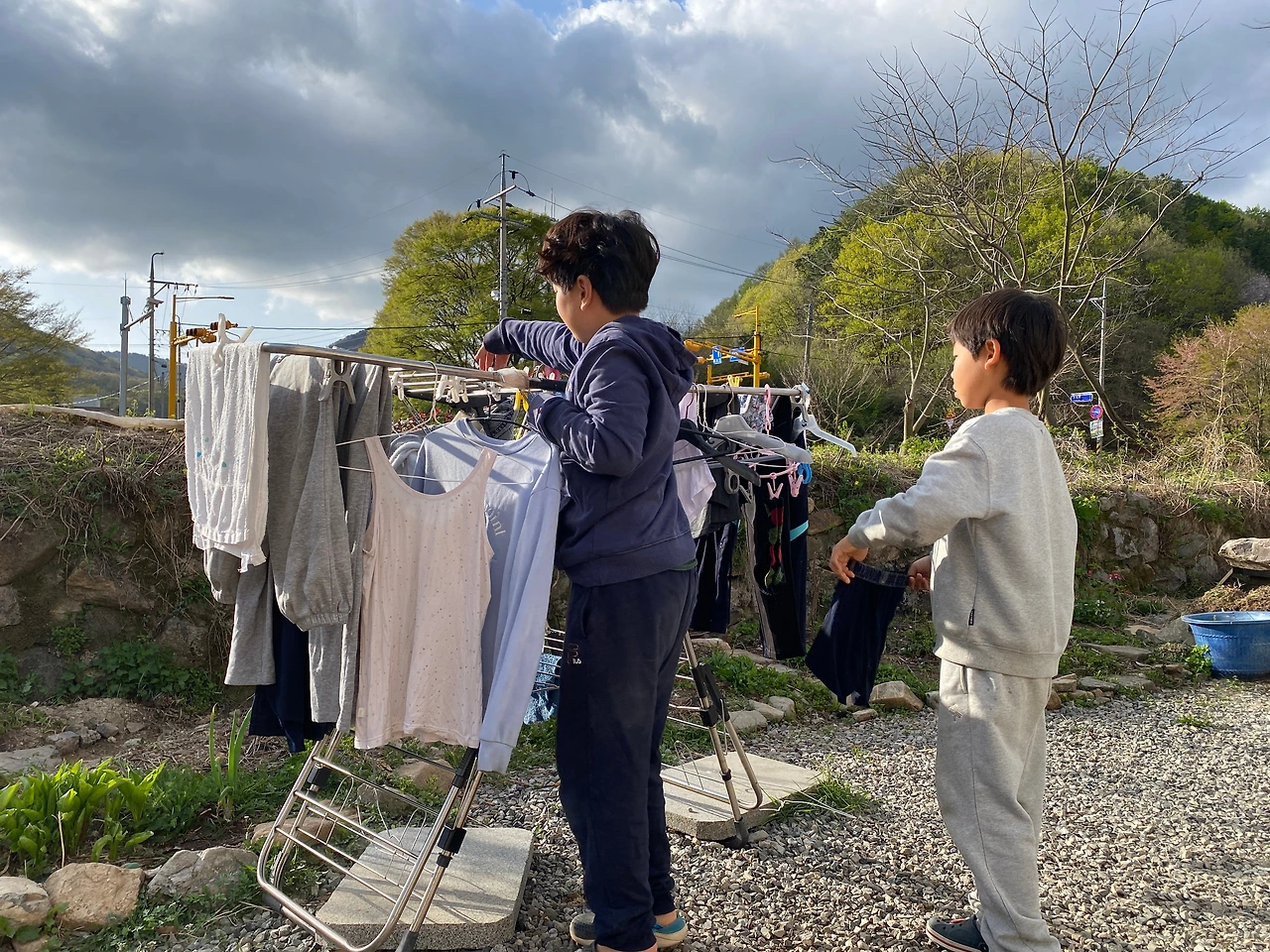 봄날 빨래 너는 일은 식은 죽 먹기입니다.