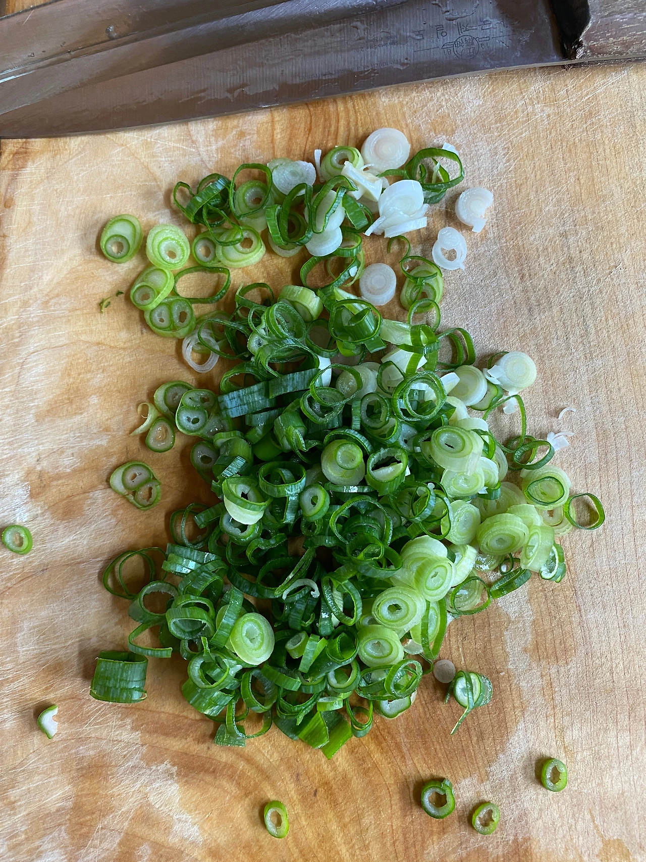 점심을 먹으려고 대파를 송송 썰었다.