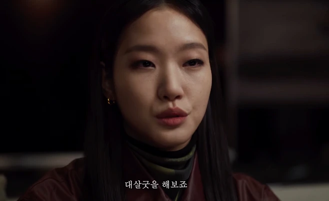 화림 역시 영화 내내 스타일리시함이 돋보인다. 르메르 착장을 한 무당은 확실히 센세이셔널하다. 차는 포르셰 카이엔을 탄다. 일이 없을 땐 헬스장 스피닝 클래스에 참여한다. 굿을 할 때는 전통 복장, 운동할 때는 그에 맞는 아웃핏, 버건디 르메르 코트, 데님 코트, 한복 아래로 보이는 스니커즈 등… 화림은 확실히 비주얼계다.