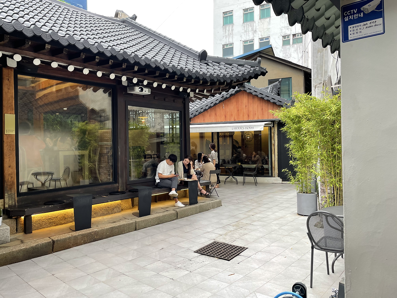 정리되지 않고 좁은 골목길을 지나, 많은 상가의 복잡함과 사람들을 벗어나 갑작스레 등장하는 한옥 카페에 마음이 트이는 게 느껴졌다.
