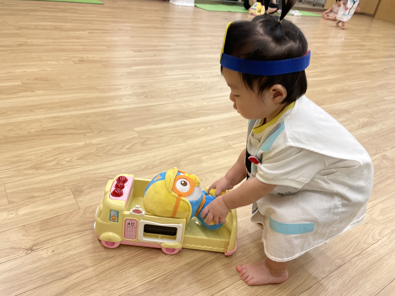 이미 상처따위는 다 잊고 기저귀통의 공포도 다 잊고 웃으면서 다른 장난감을 쥐고 있다.