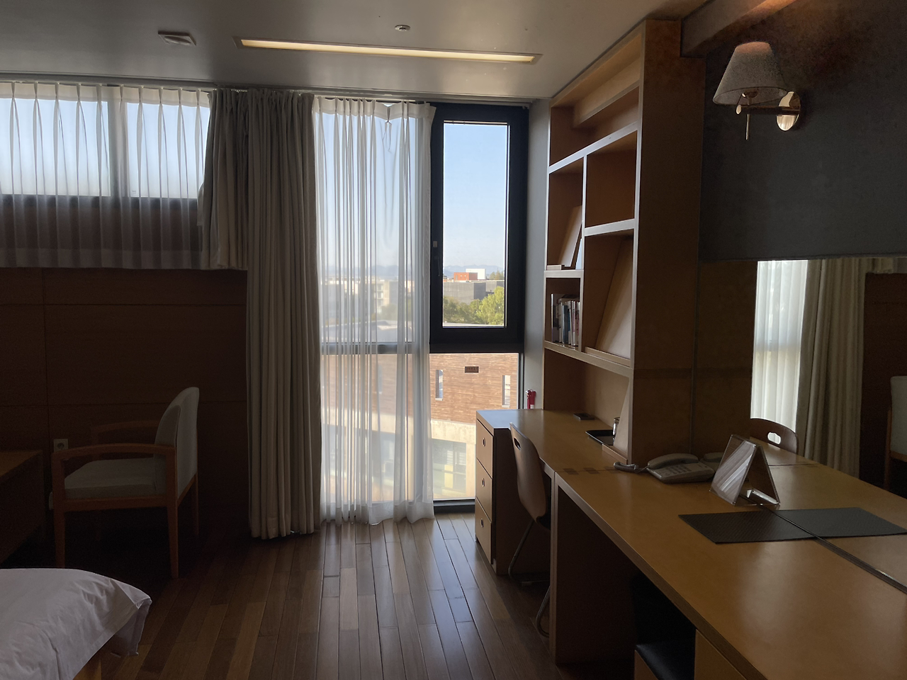 프런트에서 체크인을 하고 지지향으로 올라갔다. 삐걱거리는 소리가 매력적인 마룻바닥, 나무가 주는 따뜻한 교실의 느낌은 그대로였다. 아…… 나는 짧은 탄식을 내뱉었다. 내가 이곳에 서있다는 자체가 나에겐 기적과도 같은 일이었다. 창 밖의 따스한 햇살도 나를 반겨주었다. 짐을 풀고 지혜의 숲을 천천히 둘러보았다. 그날은 회사 워크숍으로 약간의 소음이 있었다. 스피커를 때리는 음악 소리가 거슬릴 법도 했지만 그것도 나름대로 괜찮았다. 차가운 갈색 빛의 녹물이 숙소 내 화장실에 자리해도 괜찮았다. 파주니까 모든 게 괜찮았다. 파주는 나를 관용적인 사람으로 만들어준다.