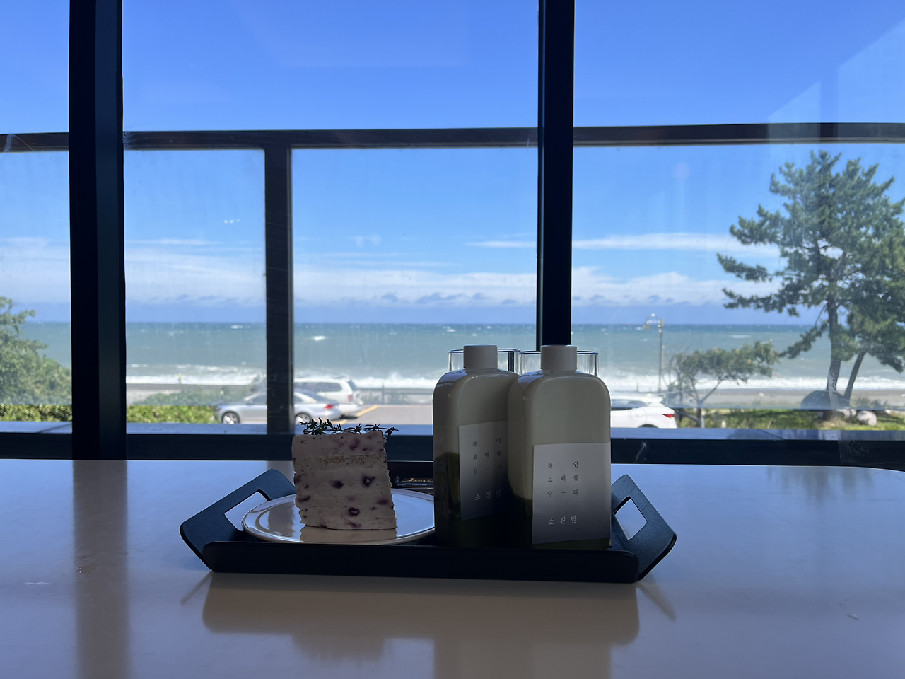 동해의 바닷가 근처 카페에 가서 바닷가를 마주하며 마시던 쑥라떼의 향기,