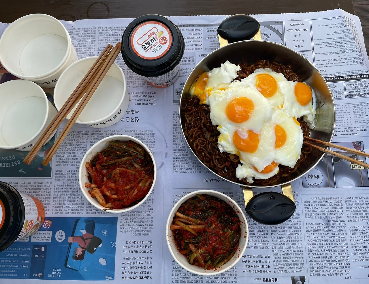 집으로 내려온 우리는 급격히 허기졌다. 동생은 짜파게티가 먹고 싶다고 했고 엄마는 계란 프라이를 올린 기가 막힌 짜파게티를 해주셨다. 파김치와 곁들여먹으니 환상이었다.