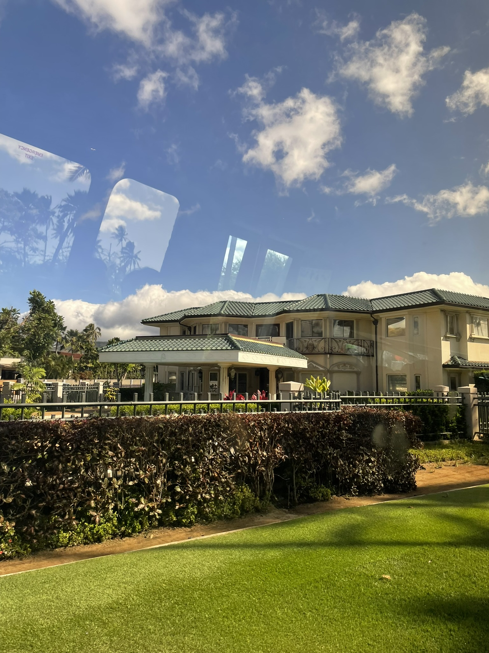 드넓게 펼쳐진 잔디밭, 몇 미터인지 짐작도 가지 않는 야자수 나무, 그 뒤에 햇빛을 받아 빛나고 있는