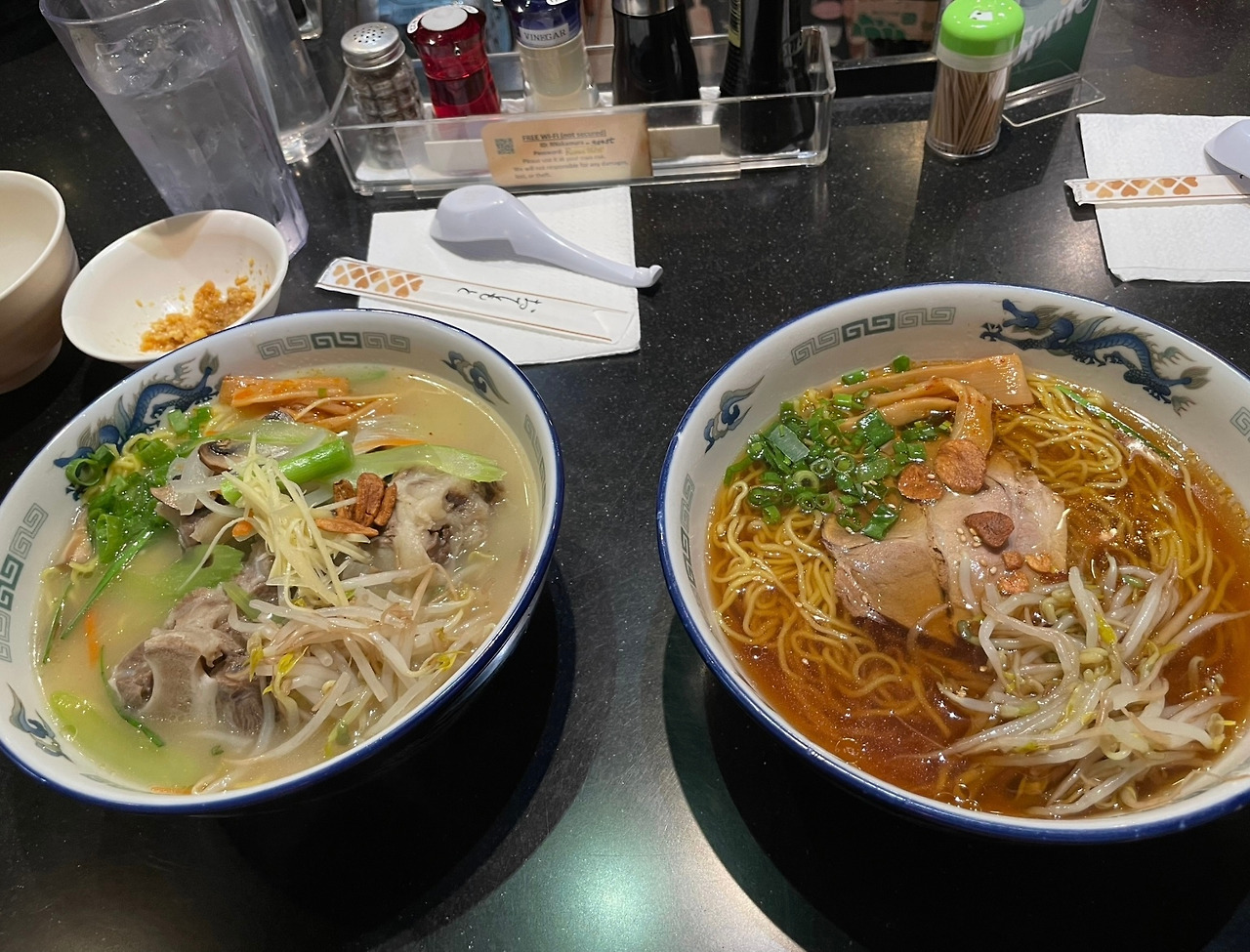특이한 라멘을 시켰고 나는 늘 먹던 돈코츠 라멘을