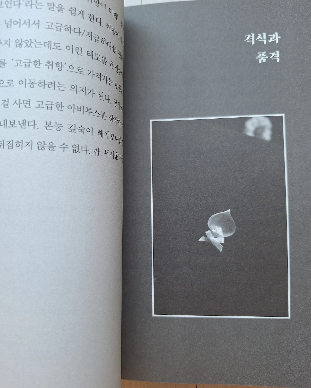 자신의 속물적 성향을 가감 없이 드러내며 서술을 시작한다. 그러나 그 고백은 자아의 탐구에 그치지 않고, 선대 인문학자들의 통찰과 사유를 자연스럽게 접목시키는 방식으로 연결되어 이해의 폭이 훨씬 쉽게 다가왔다.