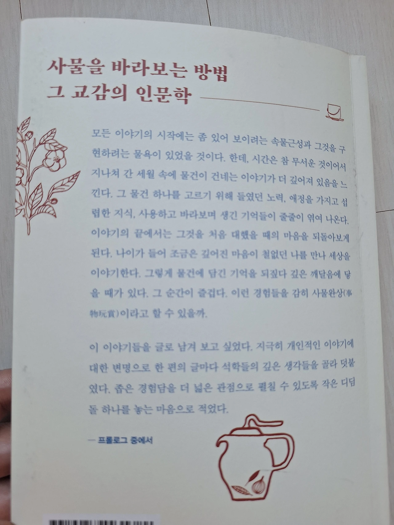 이 책의 서사는 자전적 에세이를 넘어, 삶의 주변부에서 접한 사물과 경험을 철학적, 인문학적으로 재해석해주고 있다.
