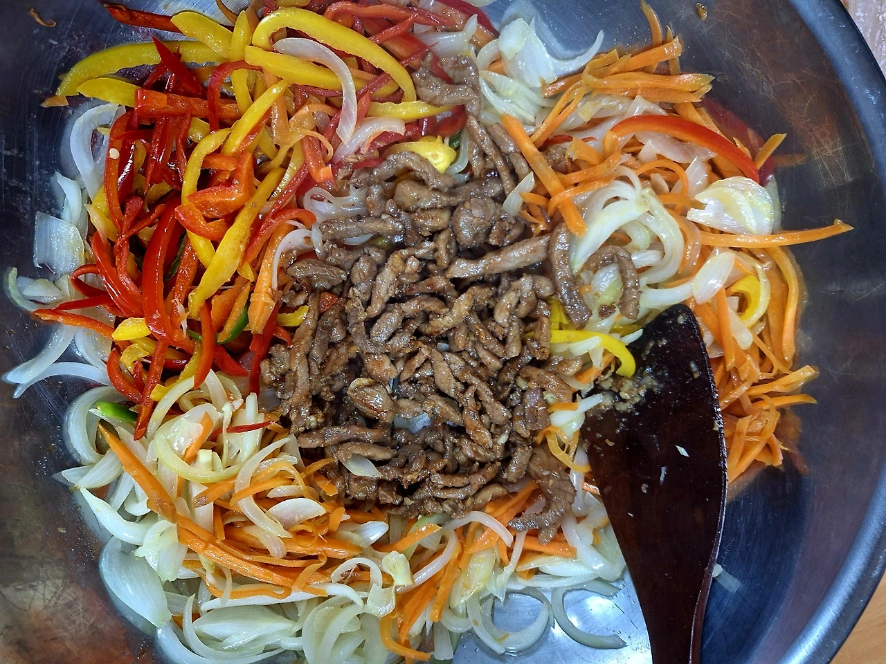 셋이 있을 때 보다 여러 야채들이 오색찬란하게 버무려지니 더 곱다.