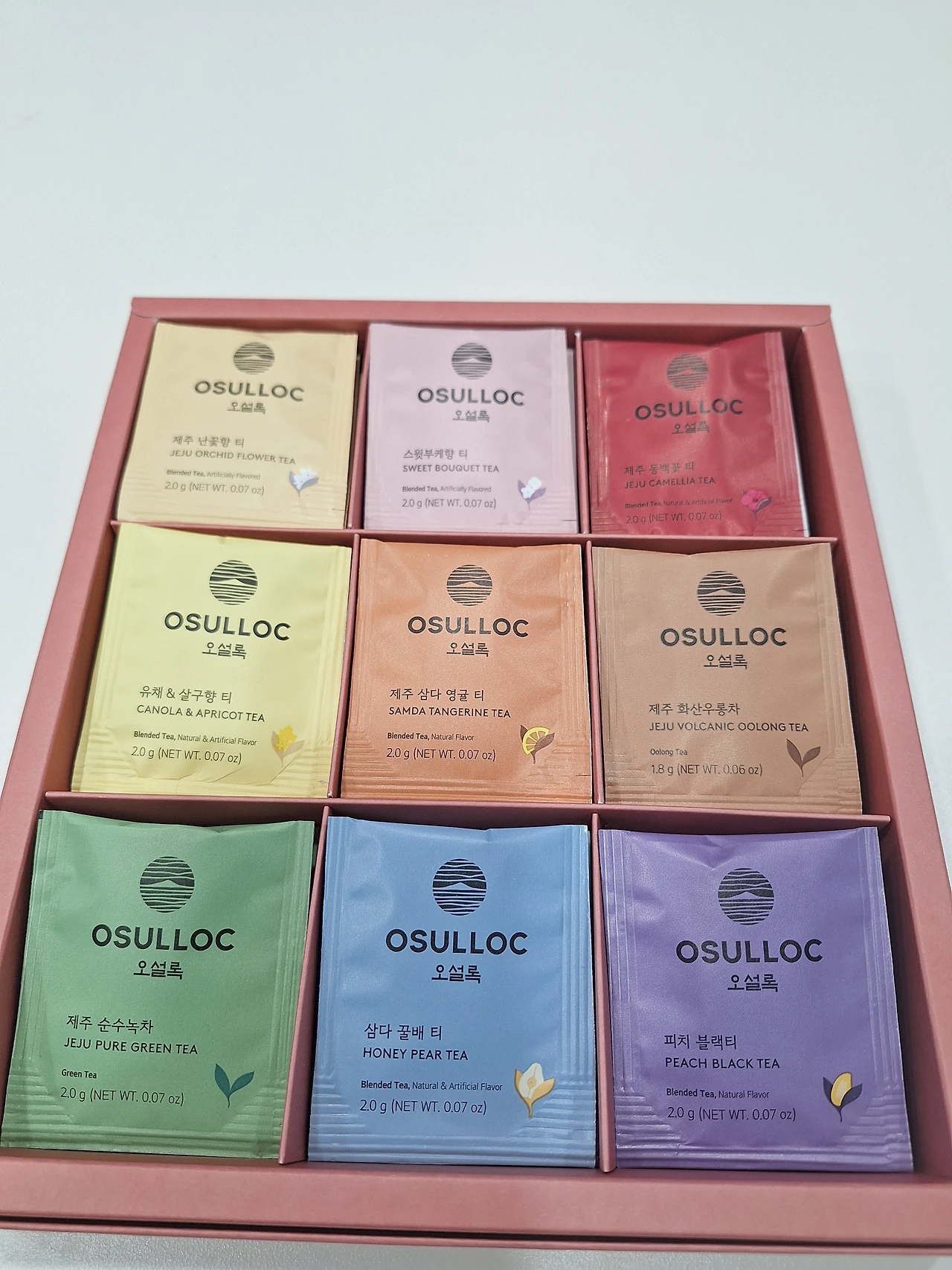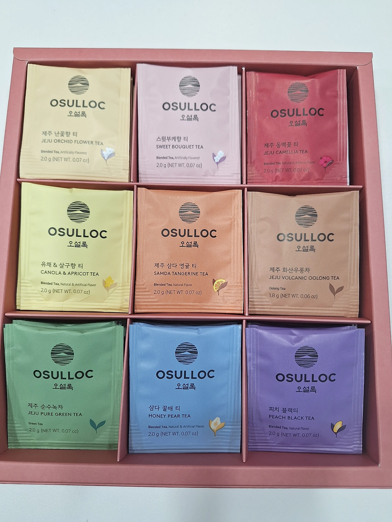 알마전 학부모님께 받은 예쁜 색깔 가득한, 제주향기가 가지런히 놓여 있는 차박스~