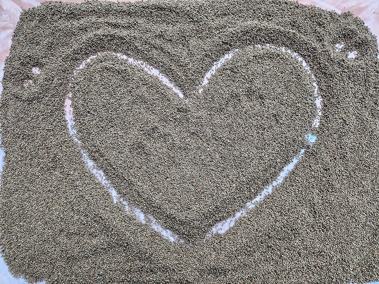깨끗히 씻어서 방앗간에 가서 갈아 먹을려구 말리고 있는 중에 손가락으로 하트를 그렸어요. ㅎ