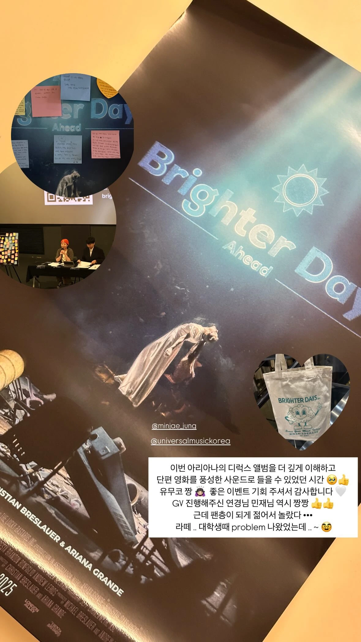 알고 보니 이번 디럭스 버전 발매와 함께 아리아나가 직접 연출한 단편 영화도 공개되었던 것. 유튜브에 올라온 줄도 모르고, 유니버설뮤직코리아에서 영화 상영과 음악 평론가분들의 GV를 한다길래 후다닥 신청했다. 그날도 하루 종일 정신없이 일하고 압구정 CGV로 바삐 향했지만 겨우 세이프. 결론적으로는 듣길 너무 잘했다!