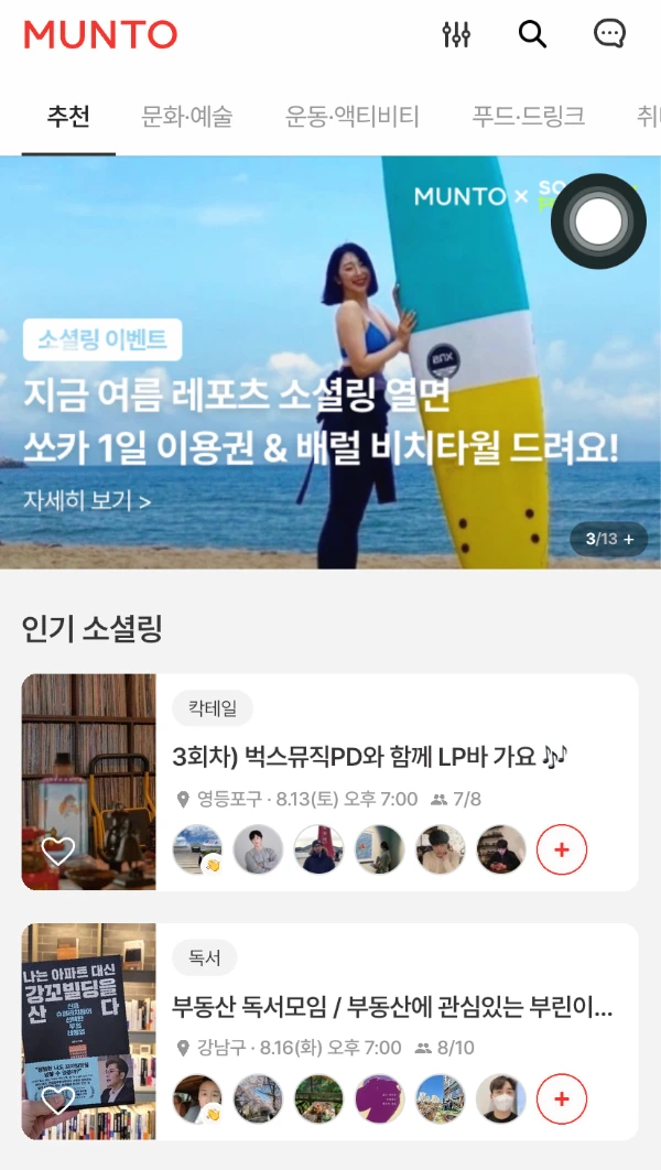 누구나 쉽지 않은 시기란 있겠지만 유난히 잘 안 풀리는 느낌이 들던 때쯤, 이직을 포기했다. 그리고 사고 싶었던 것들을 마구 사고, 미뤄뒀던 약속들을 나가고, 일주일 휴가를 내고 여행을 다녀오기도 했다. 브이로그도 만들고. 그러다가 '문토'라는 앱으로 소규모 모임들이 활발히 진행되는 것을 알게 되었다. 어느 정도 코로나에 적응하게 될 때쯤, 작은 단위의 소셜링들이 태동하기 시작한 시기였다.